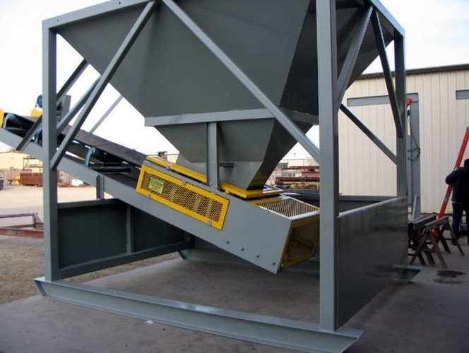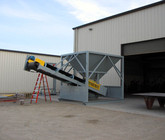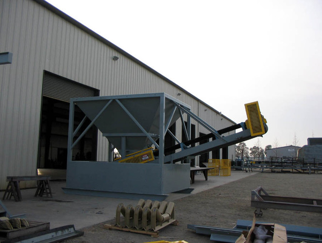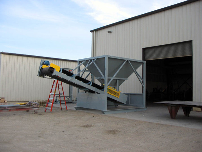 b) Hopper constructed of 1/4" thick steel plate with reinforcing.