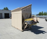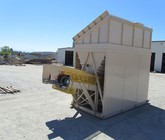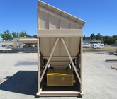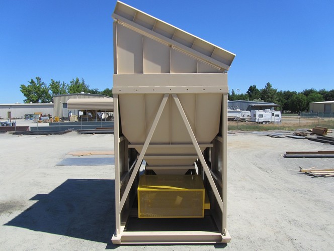 a) 8’-0” x 16’-0” hopper opening with 25 cubic yards struck storage capacity; hopper constructed of 3/8” thick steel plate with rectangular tubing at the top of the hopper and angle iron reinforcing at the mid-section and bottom section; self-relieving tapered hopper bottom opening to minimize bridging; full length skirtboards with Hercules 3/4" x 6" adjustable rubber flashing to prevent leakage between hopper bottom and belt feeder; discharge gate to control material flow from the hopper.