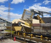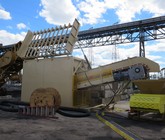 b. Heavy Duty self-cleaning reject grizzly with nominal 12” spacing to remove oversize material; grizzly bars constructed of 4”x4”x3/8” square tube; framework constructed of square tubing with steel plate and reinforcing ribs; grizzly bars hydraulically tip with 10 h.p. electric/hydraulic power package.