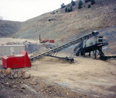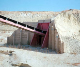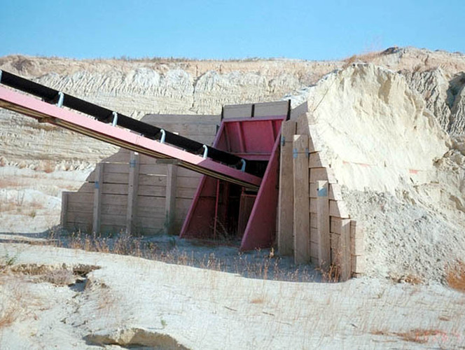 b) 3’ wide x 4’ long top hopper opening; hopper constructed of 1/4” thick steel plate with 1/4” thick AR400 liners.