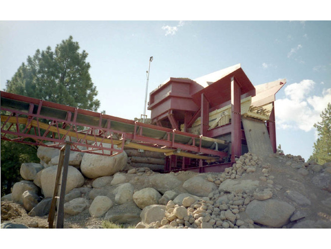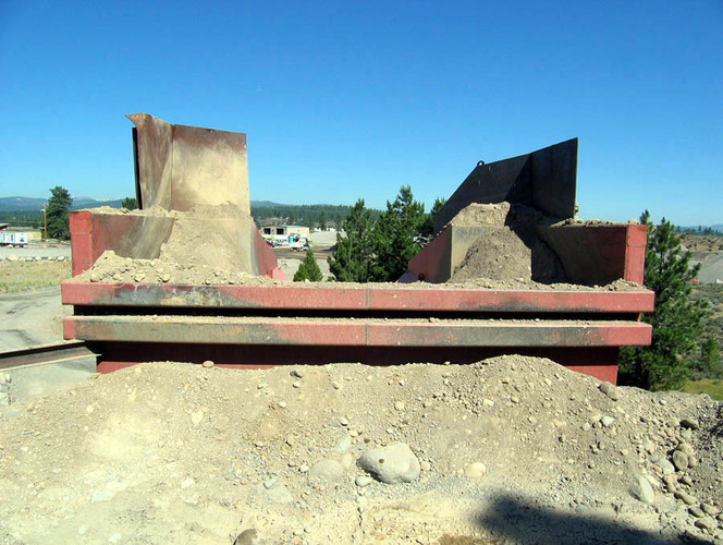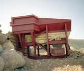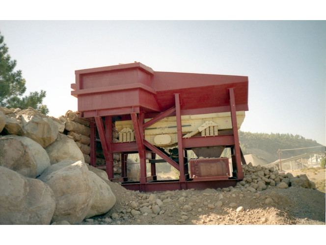 b) 50 ton capacity rock box receiving hopper constructed of 3/4" thick plate steel with reinforcing.