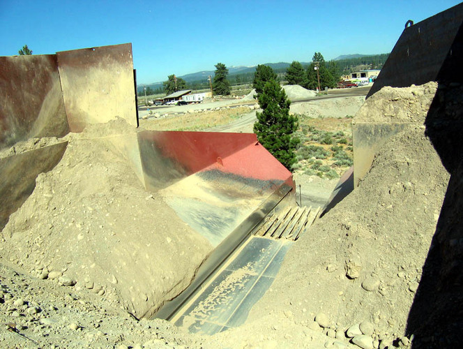c) Collecting hopper located under grizzly section to contain product passing through the grizzly section.