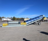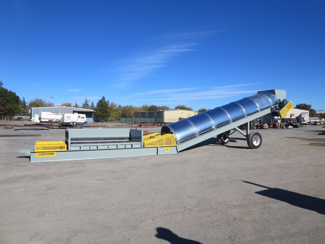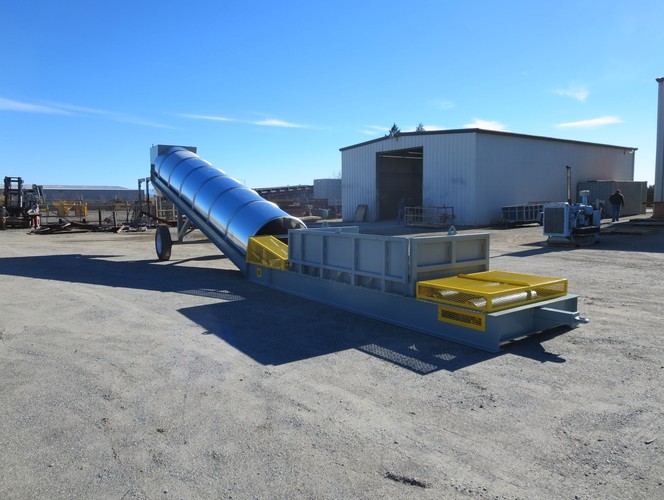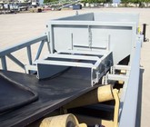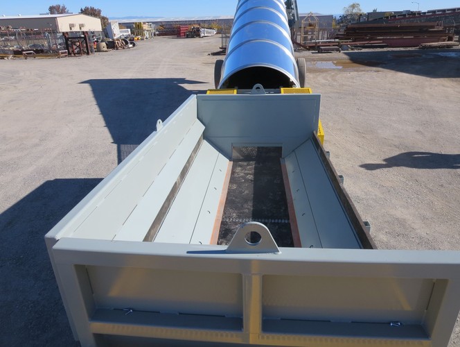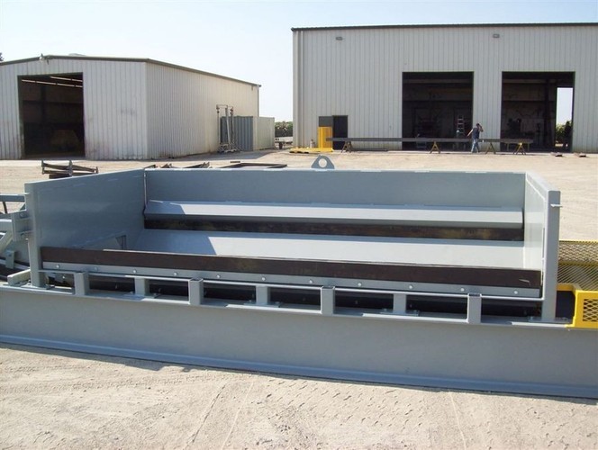 a) Low profile truck dump 11’ long x 4’-6” wide x 24” tall, hopper and skirtboards with adjustable Hercules 1/2” x 6” skirtboard rubber; side boards; removable backboard which can be installed on either side of the unit; 1” x 6” rubber bumpers.