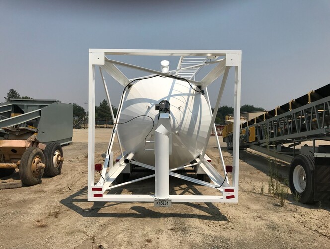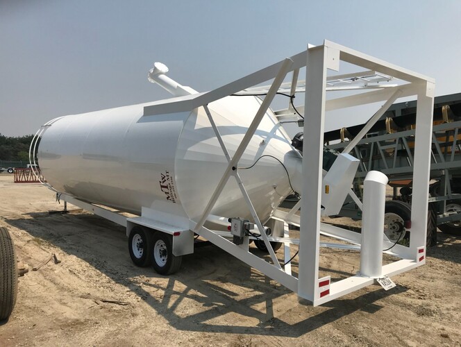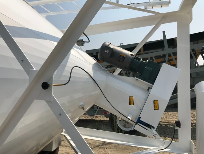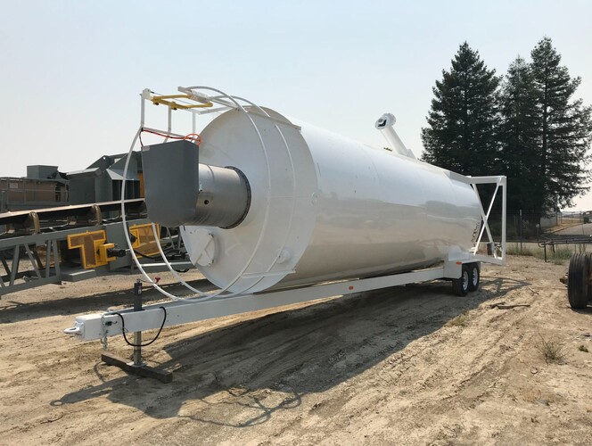 Montana Tank Works 350 Barrel/52 Ton Portable Cement Silo - 8'-6" diameter x 37' high, 10" discharge screw with 10 h.p., 3 phase/460 volt electric motor & gear box, forced feed auger system, outside ladder with MTW SafeSys Fall Arrest System, full top railing 42" tall, access hole, 4" fill pipe with male quick coupler, heavy duty Torflex axles, tires, brakes, lights, jack & pintle hitch, WAM Stainless Pulse Jet Silo Vent, relief valve, 4 aerator pads and manifold, air purge line, painted white, bin level indicators, warning light package, horn & grill buzzer. Excludes electric motor controls and wiring.