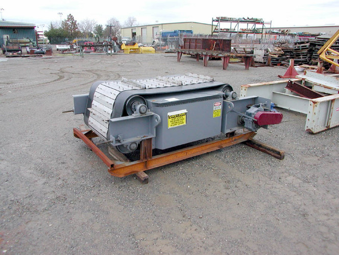 Trio model CR42 self-cleaning electro magnetic separator complete with 42" x 48" air cooled magnet with wound coils and class H insulation, 5 h.p. electric motor, shaft mount speed reducer, v-belt drive and drive guard, stainless steel armor clad belting, 4 pulley design with rubber lagged drive pulley, screw take-up assemblies, suspension lugs and rectifier.
