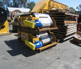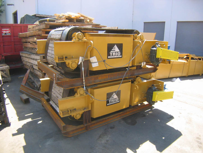 Trio model CR48 self-cleaning electro magnetic separator complete with 48" x 54" air cooled magnet with wound coils and class H insulation, 5 h.p. electric motor, shaft mount speed reducer, v-belt drive and drive guard, stainless steel armor clad belting, 4 pulley design with rubber lagged drive pulley, screw take-up assemblies, suspension lugs and rectifier.